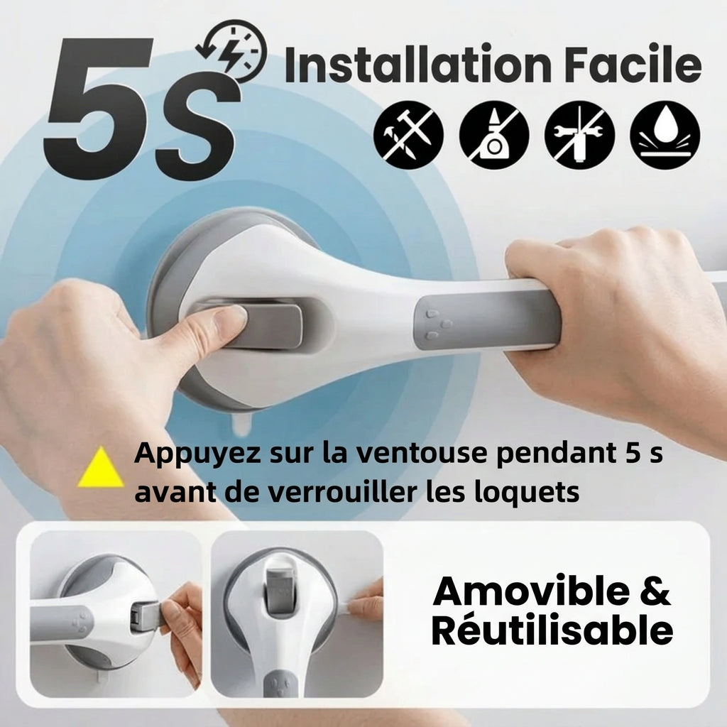 La barre d’appui qui s’installe sans perçage, sans travaux et sans autorisation.